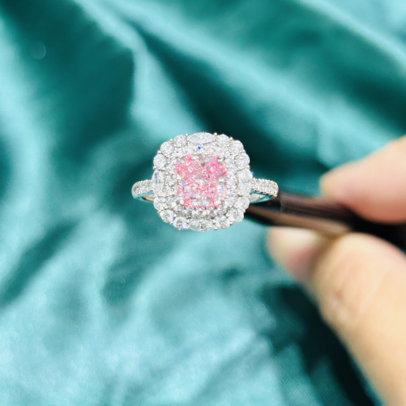 Lab Desain Perhiasan Perhiasan Berlian Klasik Solitaire Pink Cushion Cincin Berlian Mewah
