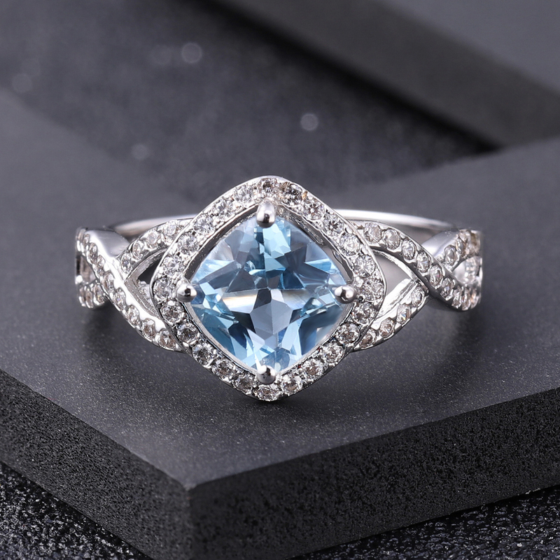 Perhiasan berlian bersertifikat laboratorium Blue Cushion Diamond Custom-Made Fancy Diamond Ring
