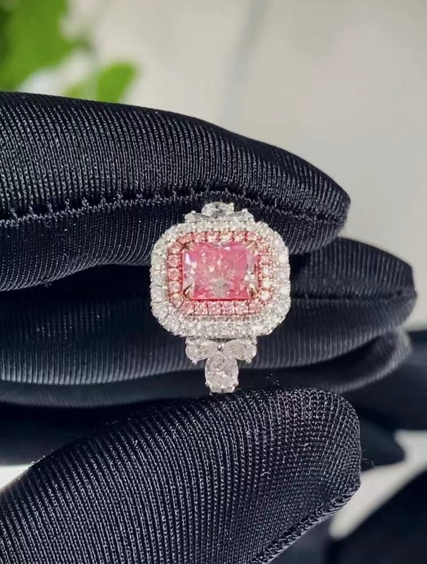 Perhiasan berlian laboratorium bersertifikat Pink Cushion Diamond Custom-Made Diamond Wedding Ring