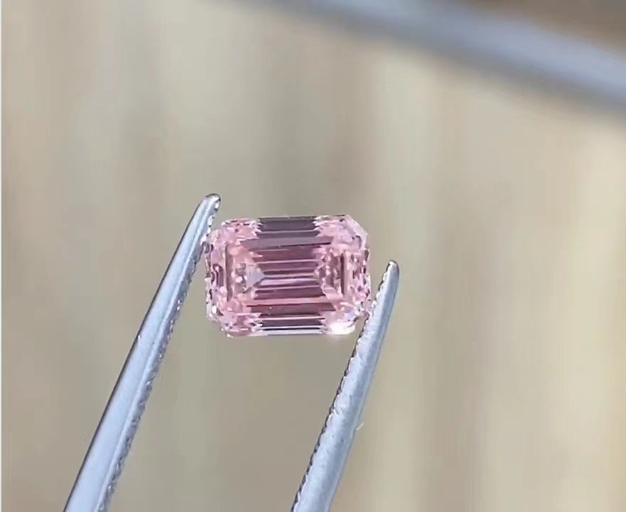 CVD Emerald Cut Lab Made Lab Grown Diamond Pink Sumber Utama Berlian Longgar 1.5~1.63ct Berlian Sythetic