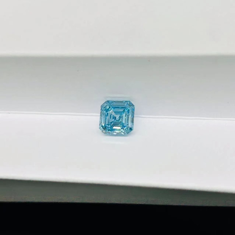 Fancy Asscher Cut Lab Grown Blue Diamonds Bersertifikat IGI 0,89 karat