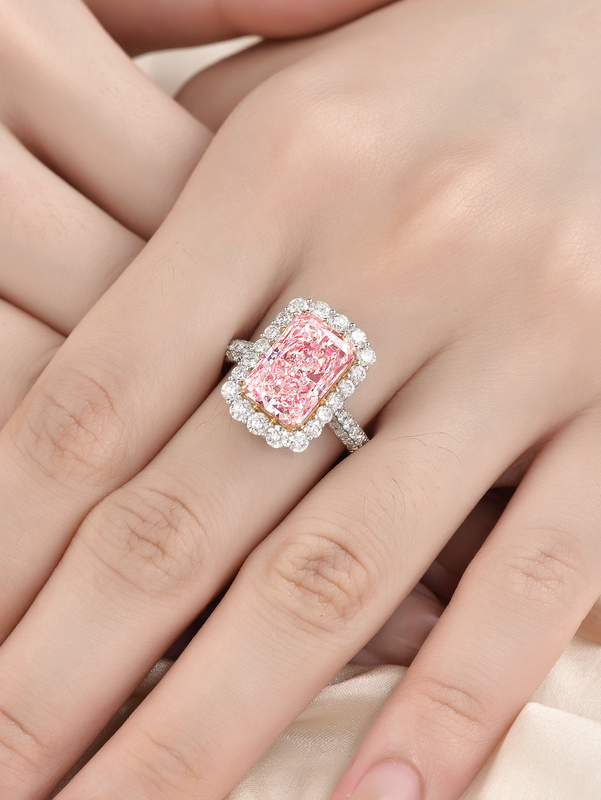 Lab Grown Pink Diamond Engagement Ring Wedding Ring Radiant Cut Design