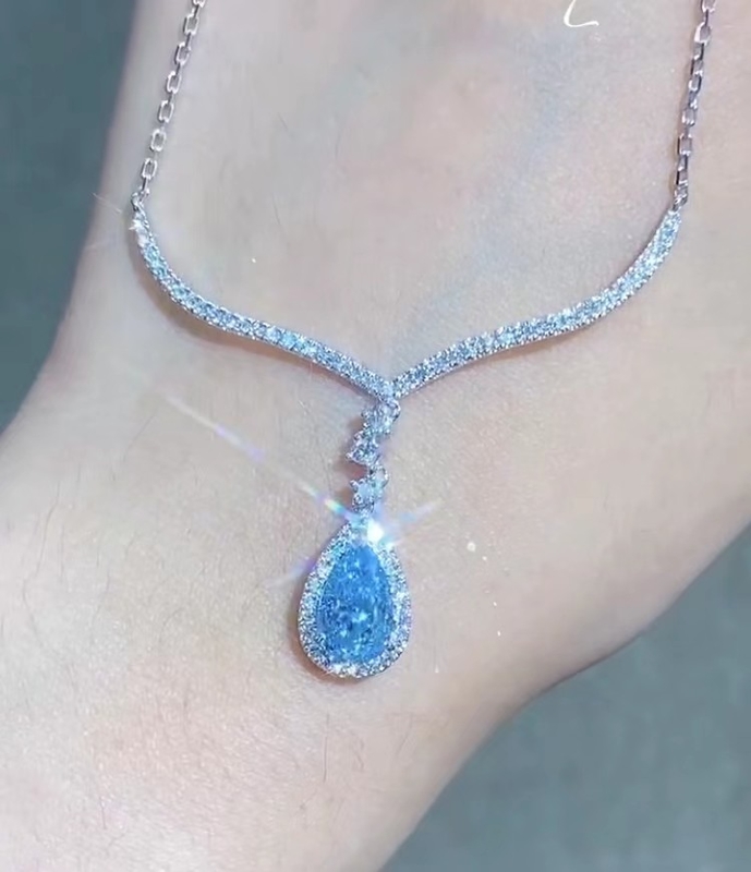 Blue Pear 18K White Gold Diamond Clarity VVS2 Perhiasan Produksi Keterlibatan Perhiasan Laboratorium Kalung Berlian