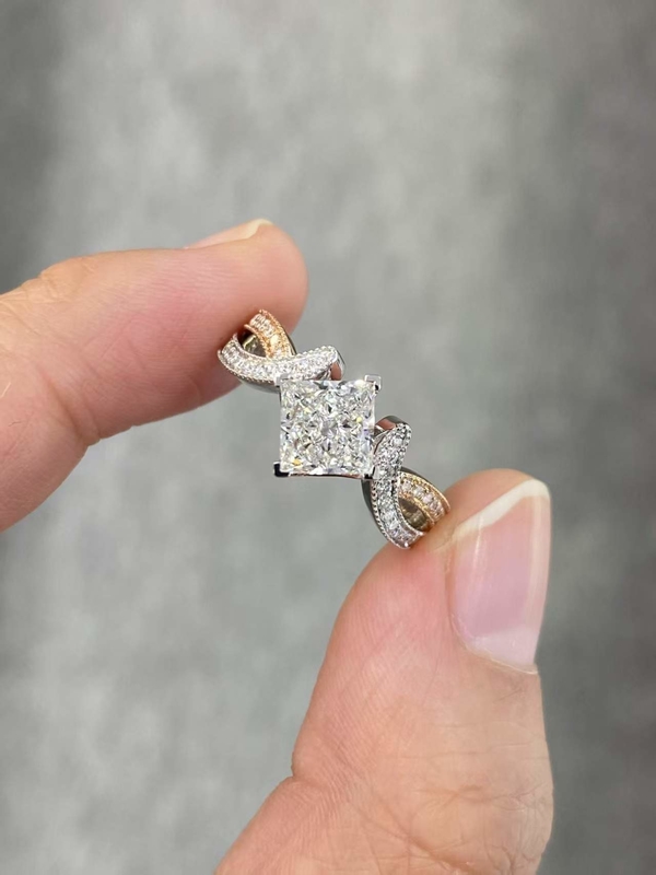 • 1.2ct Princess Cut White Lab Diamond 18K White&Rose Gold Cincin pertunangan